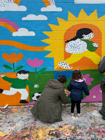 I’m incredibly grateful for this collaboration and so happy with how the finished piece brightens the school, celebrates community spirit, and creates a welcoming, colorful moment for everyone who passes by.