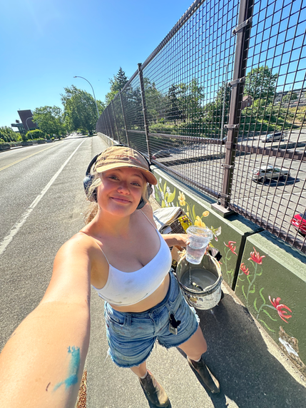 Explore the magic of Vancouver's downtown with our captivating 600-ft wide mural adorning both sides of the E Evergreen Bridge, a creation by the talented Ana The Artist!
