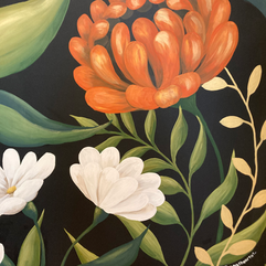 We spent time designing the space, exploring colors, shapes, and scale until it felt like a living, breathing garden. Months later, I stepped into that little bathroom with my brushes and began bringing it to life. Watching the walls bloom inch by inch was magical. It became a tiny storybook world tucked inside her home.